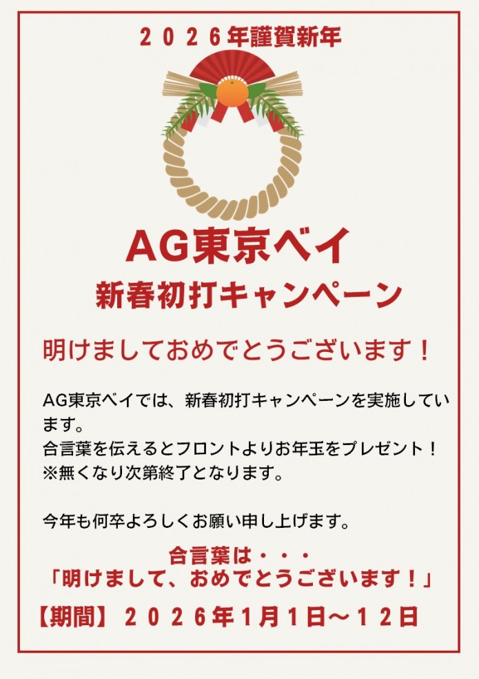 1月1日~1月12日の期間中、新年初打キャンペーンを開催致します♬